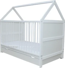 Babybett Kinderbett Bett Haus 140×70 Cm Mit Matratze Schublade Weiss 0 Bis 6 Jahre