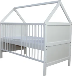 Babybett Kinderbett Juniorbett Bett Haus 140×70 Cm Umbaubar Mit Matratze Weiss
