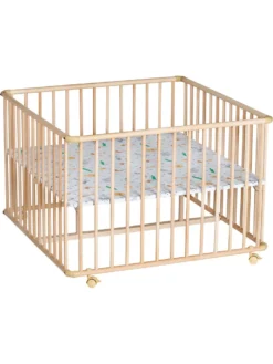 Roba Laufgitter ‚Adam & Eule‘, 75 X 100 Cm, Spielgitter Inkl. Schutzeinlage Und Rollen, Holz Weiß