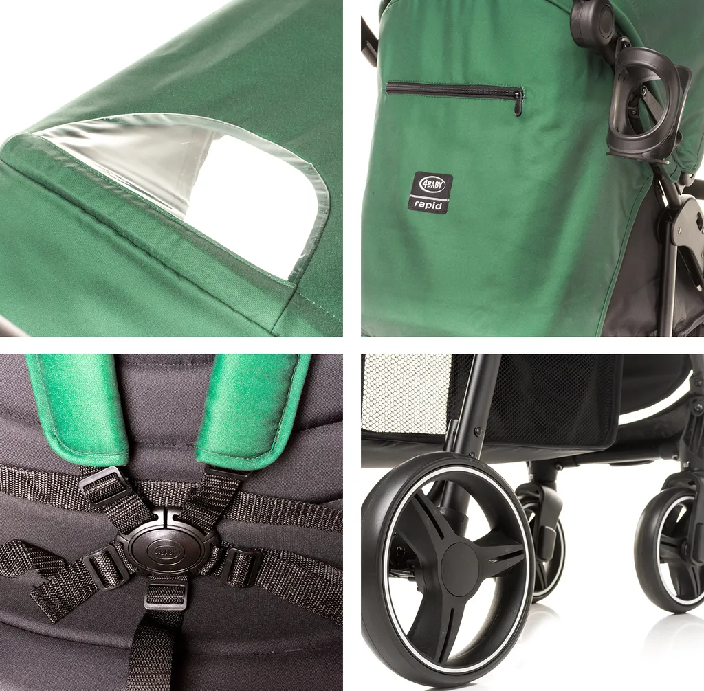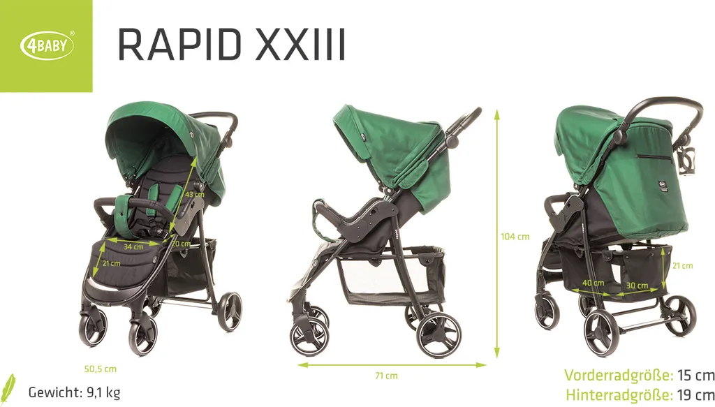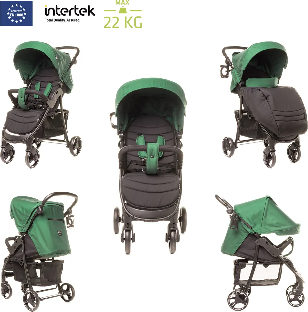 4BABY Rapid, Kinderwagen, Sportwagen, Ein Großer, Leichter Kinderwagen, Griffhöhenverstellung, Beinabdeckung, Große Räder Farbe: Grün