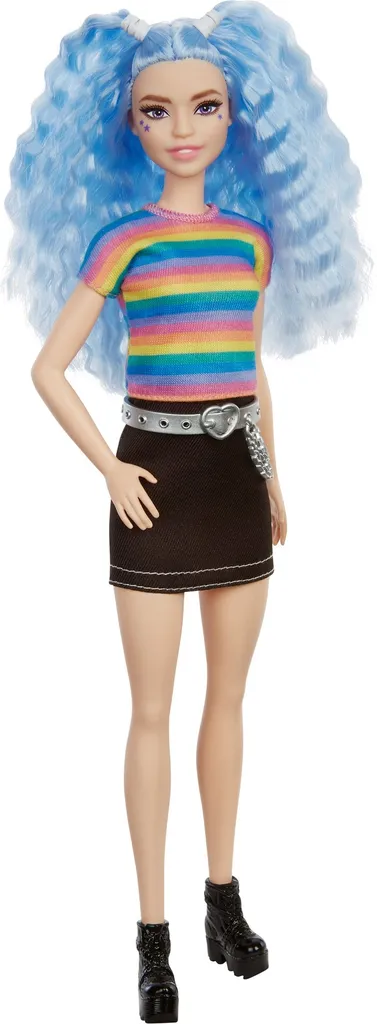 Barbie Fashionistas Puppe (blaue Haare) Im Regenbogen-Shirt Und Rock