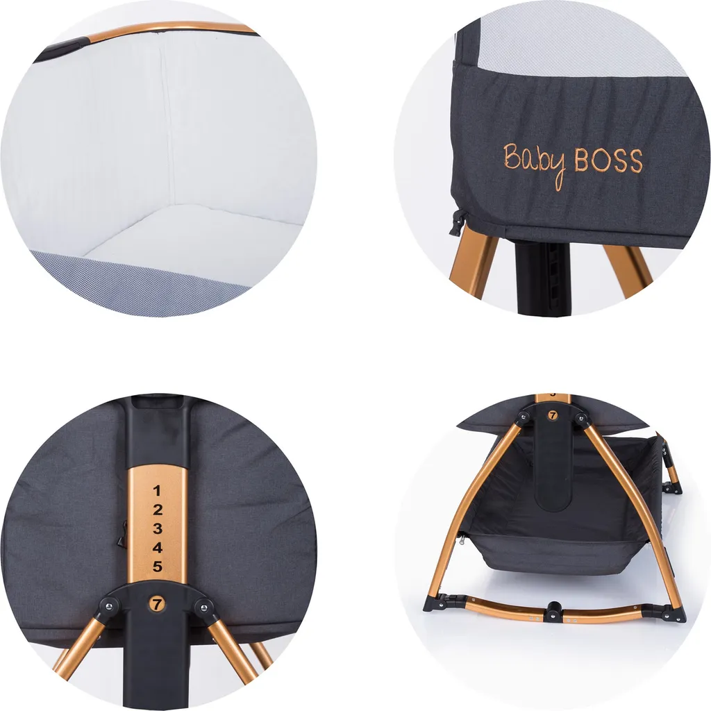 Chipolino Beistellbett Baby Boss Matratze, Moskitonetz, Schaukelfunktion, Räder Beige