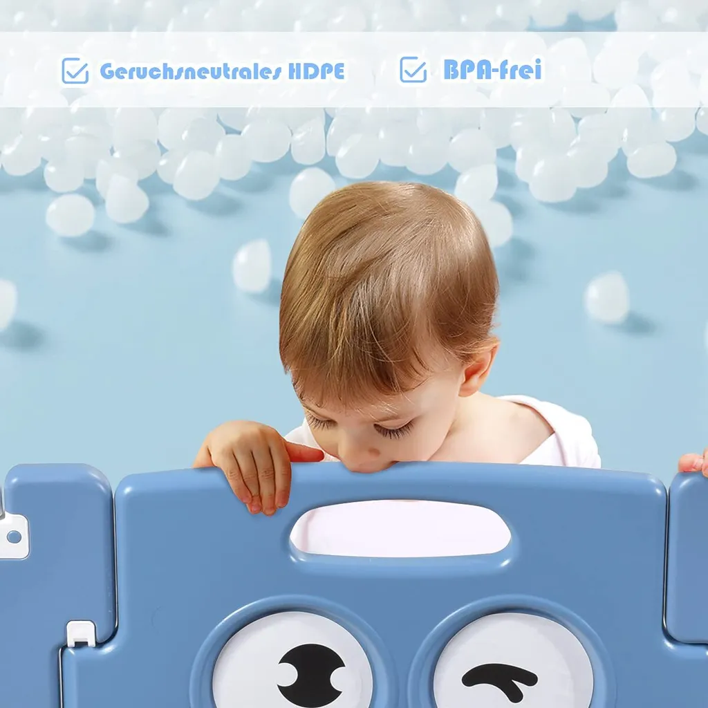 COSTWAY Baby Laufgitter 14 Paneele Mit Tür Und Spielzeugboard, Laufstall Aus Kunststoff, Absperrgitter, Krabbelgitter, Schutzgitter Für Kinder Im Alter Von 3 Monaten Bis 6 Jahren (Blau)