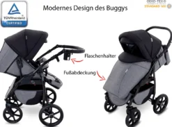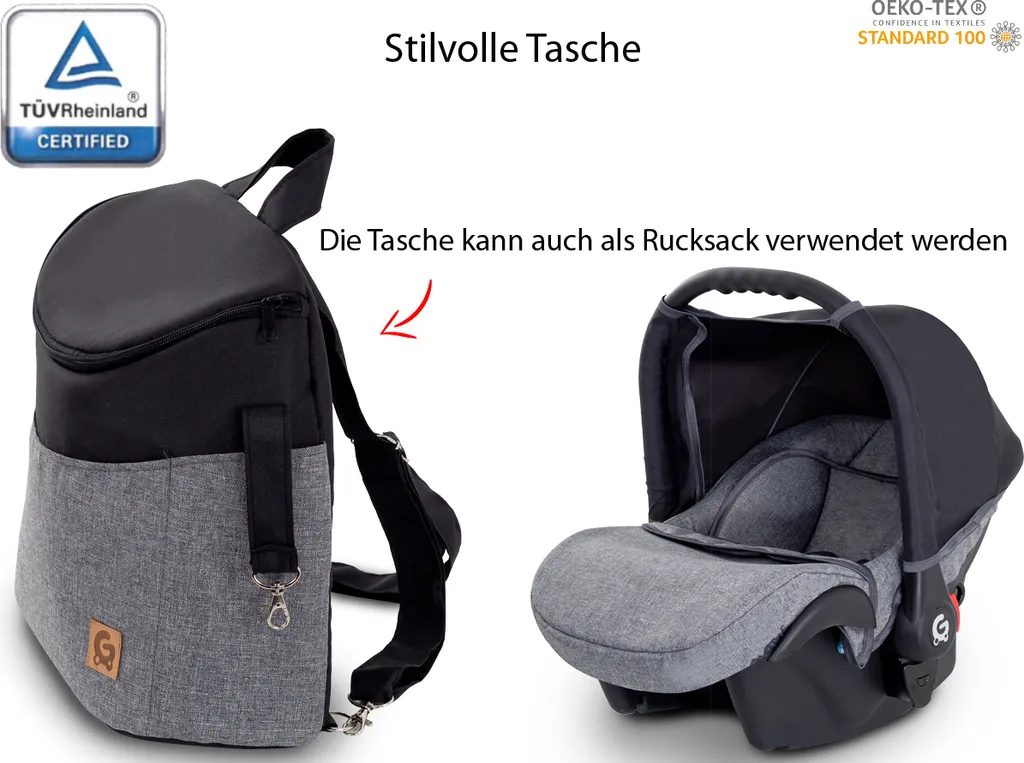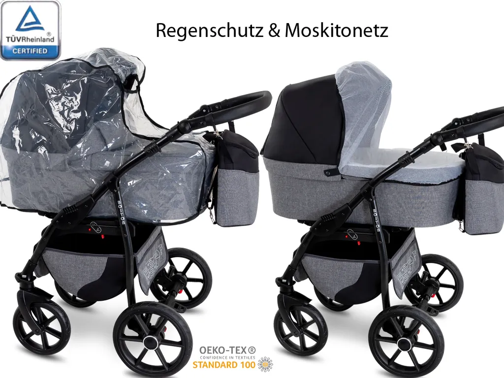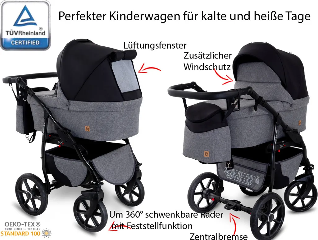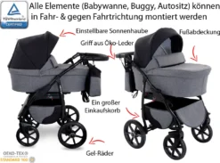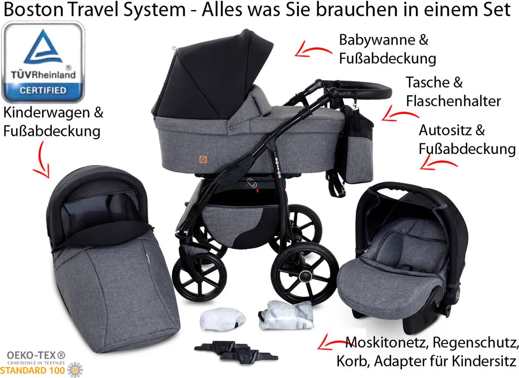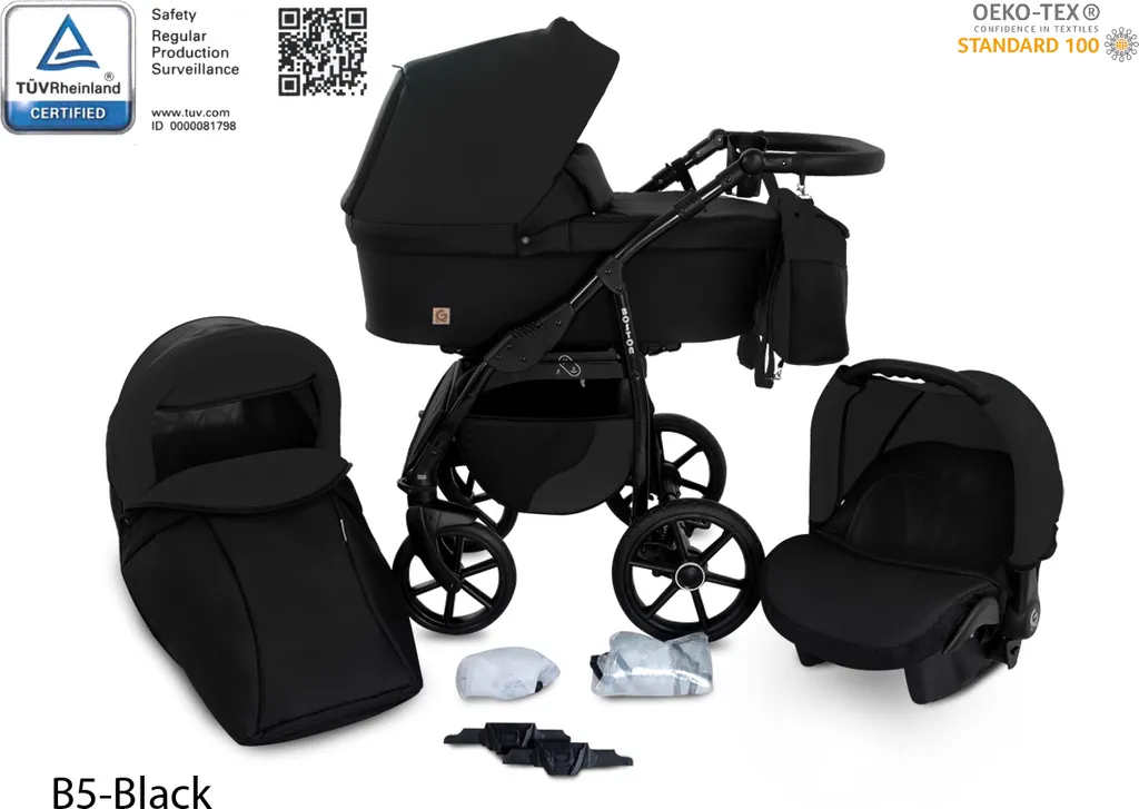 GaGaDumi Boston 3 In 1 Kombikinderwagen Kinderwagen Babyschale Buggy Autositz Carlo Komplettset, Hergestellt In Der EU (B5-Schwarz)