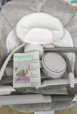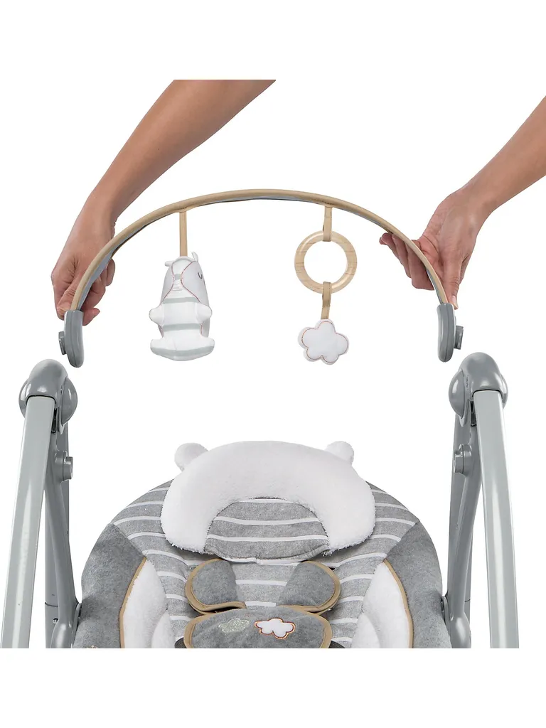 Ingenuity Baby Ingenuity, Bella Teddy Zusammenklappbare Und Tragbare Babyschaukel Mit 5 Schaukelgeschwindigkeiten, 8 Melodien, 5-Punkt Sicherheitsgurt Und Hochwertigem Plüsch Babyschaukeln Wippen