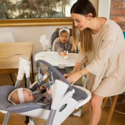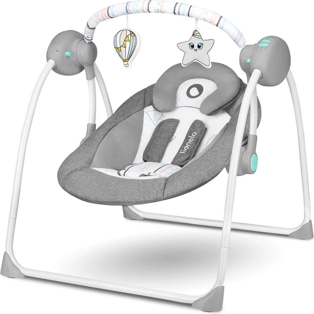Lionelo Ruben Baby Wippe Babyschaukel Elektrisch Mit Liegefunktion Von 0 Bis 9 Kg Moskitonetz Kuscheltierbügel Dunkelgrau-Türkis