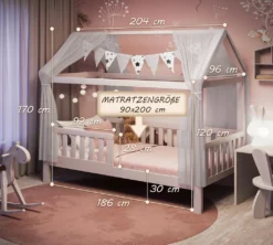 | Zusätzliche Varianten | VitaliSpa Kinderbett + Matratze+ Schubladen Wiki Weiß 208 x 148 x 96 cm Massivholz, VitaliSpa Kinderbett Hausbett weiß 90×200 cm Schubladen Bett Holz Kinderhaus |