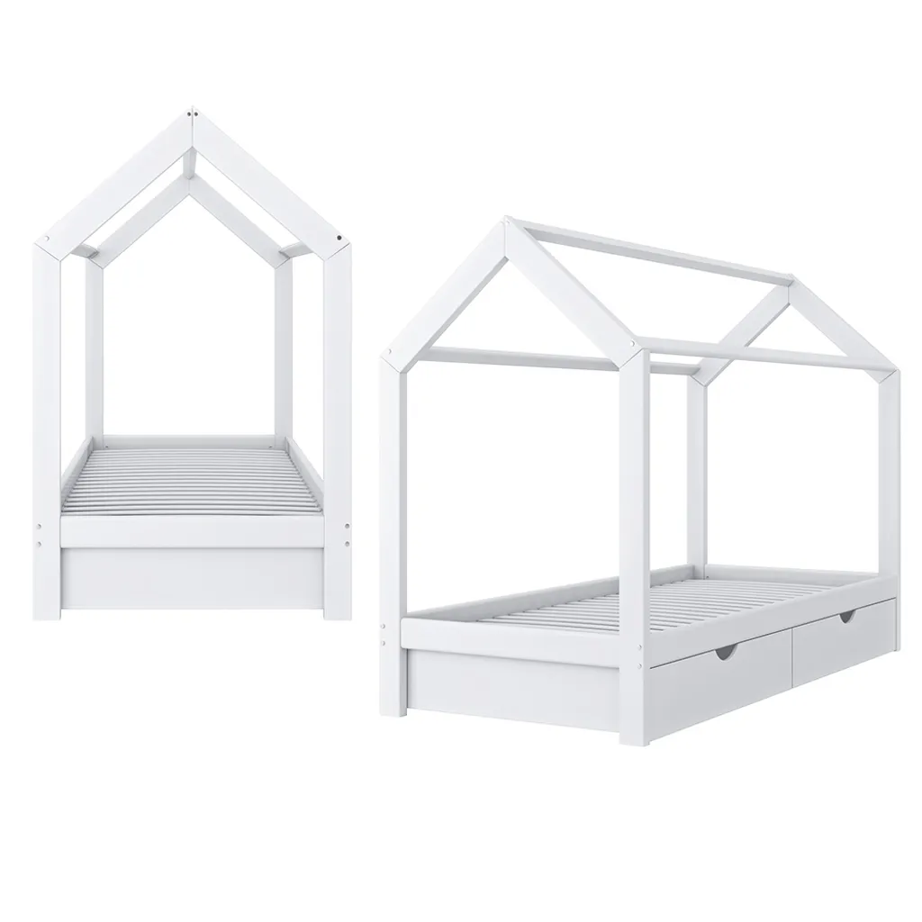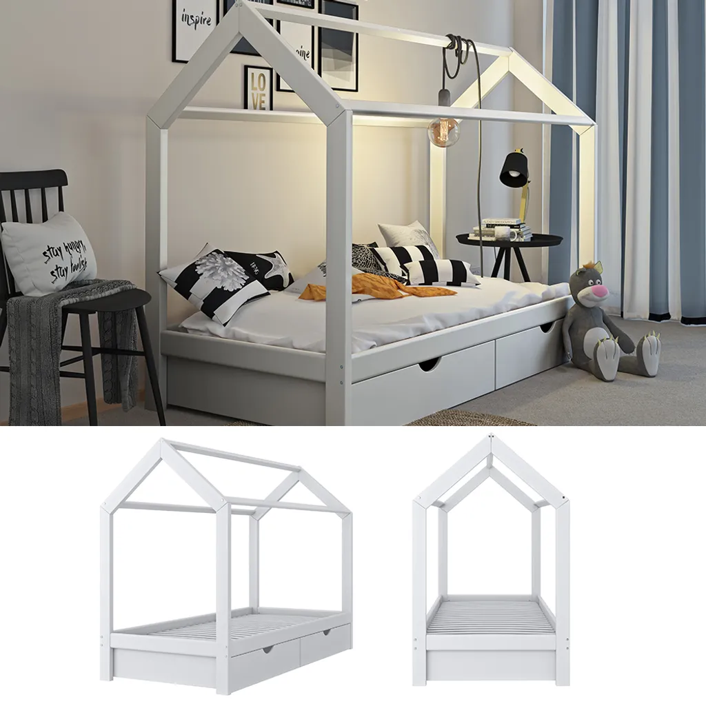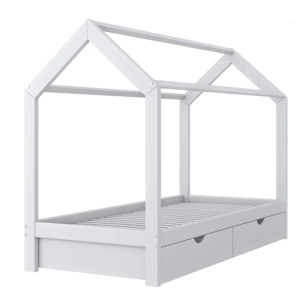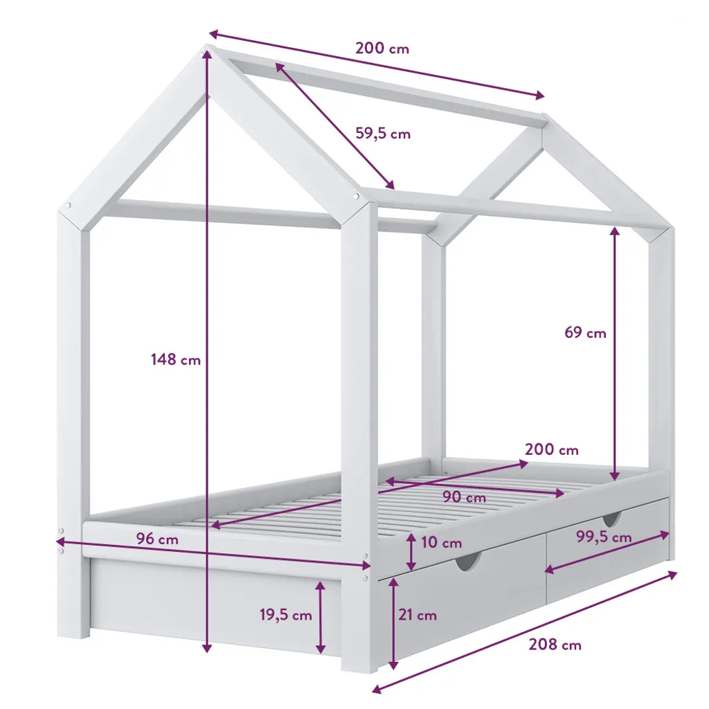 VitaliSpa Kinderbett Hausbett Weiß 90×200 Cm Schubladen Bett Holz Kinderhaus